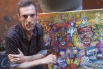 7 juin 2017, par Annick CHEVALIERArnaud Savary consacre sa vie à la peinture et à la poésie. Il est le neveu de Jérôme, le créateur du Grand Magic Circus, il ne s’en cache pas. Si nous nous échinons en vain à lui arracher un sourire pour la photo, il n’en n’est pourtant pas avare dans la relation humaine et le petit peuple bigarré qui habite ses tableaux non plus. On peut voir une de ses grandes toiles au forum Jorge François jusqu’au 30 juin à Saint Pierre d’Arene, derrière le Négresco. ?
