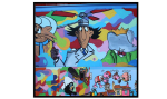 Aux murs, les grandes toiles et les dessins qui illustrent le bel ouvrage montrent le travail passionné de l’artiste inspirée par les riches métaphores de l’auteur.