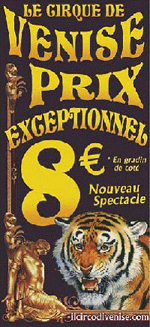 14 janvier 2009"Durant deux heures de grand spectacle, nous allons vous faire oublier que nous sommes au 21ème siècle. Vous n’avez qu’à vous laisser bercer par ce joyau qui vous est offert. Entre l’Homme et l’Animal, vous allez pénétrer dans un monde mystérieux, embaumé de sciure et de paillettes étincellantes. La musique éclate, les rideaux s’ouvrent : Place à la piste, place au rêve, place au Grand Cirque de Venise". Le Cirque de VENISE respecte la tradition vénitienne : c’est cette tradition que vous (…)