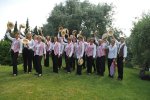 Harmonie Toot Sweet est un groupe vocal en canotier et gilets à rayures rouge et blanc. Cette tenue annonce la couleur barbershop.
