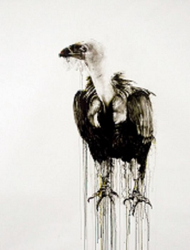 – Le travail de Franck Lestard interroge tour à tour : l’icône, la vanité, la représentation, l’effacement, la dilution, et par de là, la grande présence qu’ils dégagent, ces "portraits" d’animaux semblent toujours directement menacés par ce qui les a fait “naître”. Traités à l’encre et à l’aquarelle ils dégoulinent à l’image de ces glaçons menacés par la chaleur de l’été, portant