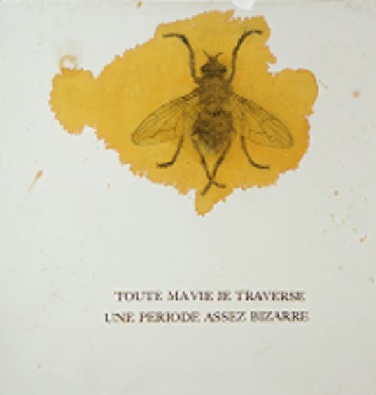 – Avec Gérald Panighi il faut aimer le vide. Nous pourrions dire que son travail est une suite de petites choses... A première vue peut-être effectivement des petits dessins qui semblent perdu dans l’immensité de la feuille. Ce sont des vignettes empruntées à la bande dessinée : un résultat hésitant, de loin nous pensons à une épreuve due à un système de reproduction archaïque. Toutes ses images sont tachées, contournées, entourées à l’huile de lin, traces d’acrylique et de poussière, le tout ponctué par des phrases anodines piquées aux faits divers de la presse locale, volées à des discussions de comptoirs.