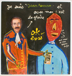 Voix haut perchée teintée d’accent du sud et moustache virile, faconde méditerranéenne et curiosité intellectuelle toujours en éveil. Rusé et manipulateur pour les uns, attachant et désopilant pour les autres. Parlant sans relâche de son passé sans être passéiste, un ancien pauvre devenu riche et qui s’en moque … Jean Ferrero est un personnage unique, inimitable. Totalement atypique dans le monde de l’art contemporain.