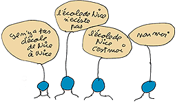 Personne ne saurait vraiment dire ce qu’est l’école de Nice. Mais Raphaël Monticelli, Agrégé de Lettres et délégué académique à l’éducation artistique, sait, au moins, ce que l’école de Nice n’est pas. Ainsi, l’école de Nice n’est pas l’ensemble de tous les artistes qui œuvrent dans la région niçoise. L’école de Nice n’est pas davantage un ensemble d’artistes ayant en commun un regard sur le monde et une pratique de l’art. Pas d’unicité de tendances à l’école de Nice.