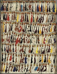 ARMAN 1928-2005. Allure d’objets (Bouteille), 1958-1959. Huile sur papier marouflé sur toile. Signée vers le bas. 140 x 140 cm.