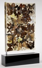 ARMAN 1928-2005. Papillons, 1975. Accumulation de papillons sous plexiglass. Signée. Pièce unique. 60 x 40 cm hors socle.