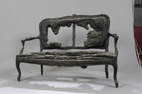 ARMAN 1928-2005. Horizontal Catastrophe, 1984. Série The Day After. Canapé Louis XV calciné en bronze à patine noire. Cachet du fondeur Bocquel. Signé et justifié, un des 8 exemplaires originaux + 4 EA. H. 98 L. 138 P. 65 cm.