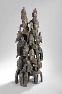 Bernard PAGES né en 1940. Pal aux anneaux, 2002. Bois de cyprès sculpté et anneaux de chaîne soudés. H. 94 L. 44 P. 44 cm.