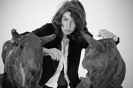 Trouvant son inspiration dans l’art préhistorique revu et corrigé à la lumière de notre siècle, dans les contes et légendes qui l’ont construite, elle s’entoure d’un petit peuple de faunes et d’animaux mythologiques, de taureaux et de chevaux gigantesques. Ses taureaux peints dans un chromatisme sobre, terre et ocre, se retrouvent aussi sous la forme de puissantes sculptures et de dessins au tracé fulgurant, exécutant une danse élégante et sauvage. Des reproductions agrandies sur dibon-aluminum sont exposées dans l’entrée du parking du Cours à Grasse. On retrouve ce tracé nerveux et juste dans les hachures qui modèlent les corps des précieux chevaux blancs grandeur nature, par-dessus la pâte dont ils sont façonnés.