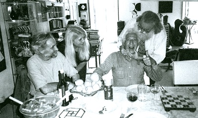 Et le livre de Frédéric Altmann « André Verdet, mon carnet de photos », accomplit la même alchimie, qui est d’extraire du destin d’André Verdet, par des instantanés et des textes, son formidable appétit de vie, son être dansant. D’abord au sens propre puisqu’à chaque fête André dansait comme un fou, mais sa danse était aussi celle d’un langage en liberté, d’une pensée qu’il lançait vers le ciel et son interlocuteur fasciné : une rivière de mots bouclés mais tombant pile, comme s’il avait un diapason dans la tête. Les photos choisies dans le livre sont revigorantes, une leçon de plaisir, de présence, d’instinct du partage. Sous le titre « Souvenirs de mon ami André Verdet (1913-2004) à l’occasion de sa naissance, Frédéric Altmann » écrit : André Verdet, peintre, mémorialiste, historien, collectionneur, restera à jamais gravé dans la mémoire artistique de la Côte d’Azur et au delà de nos frontières. En effet cet homme pluriel avait une parfaite connaissance de l’histoire de l’art. A son actif plus de deux cents publications sur ses amis artistes : Picasso, Matisse, Braque, Miro, Cocteau, Magnelli, Léger, Jenkins, Kijno, Karel Appel, Atlan, Borsi, Miotte, Jean Fautrier ... des amitiés fortes avec la famille Sapone… Ne passons pas sous silence son amitié avec Jacques Prévert. Ce fut une collaboration étroite entre les deux hommes.