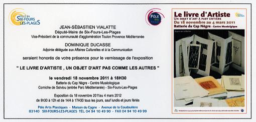 C’en était donc trop : donc lorsque Salvatore m’a offert de glisser un texte dans plusieurs de ses « Baous » pour l’exposition « Le livre d’artiste, un objet d’art pas comme les autres », au Centre Muséologique de Six-Fours-Les-Plages, du 18 novembre 2011 au 4 mars 2012 considérant que j’avais vu de mes propres yeux ce Baou-là être un point de rencontre magique entre un certain nombre de gens tant de gens, j’ai concocté une dévotion à ma manière.