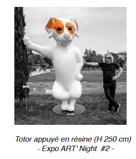 Stéphane Bolongaro est un sculpteur autodidacte niçois, issu d’une famille d’artistes depuis au moins trois générations. C’est en voulant faire plaisir à sa mère qui venait de perdre son petit Jack Russel, que Totor est né. Ce chien, qui en prend des poses humaines, est devenu le personnage récurrent de l’oeuvre de Bolongaro, avec pour but évident de susciter un sourire mais aussi de nous interroger sur la nature animal et humaine. Présentes
