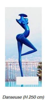 Tel qu’avec Stéphane Cipre et ses sculptures Liberty de 2m55, l’Art sanglé, La Chaise, Le King et Le Kong, avec Richard Orlinski et ses sculptures l’Ours ou bien le Wild Kong de 1m30 chacun, Rafael Barrios avec sa sculpture Malabarismo Linéal M281 de 2m20, Hélidon Xhixha avec ses sculpture Vela de 2m20 et Column de 2m, Philippe Berry avec Trois Grands Ballons de 3m, Stéphane Bolongaro avec Totor les bras croisé et Totor appuyé, de 2m50 chacun, Marion Burklé avec ses danseuses Salomé, Danse, Nina et la Grande Danseuse, de 2m à 2m50 chaque, Giorgio Laveri avec son Rouge à Lèvre de 1m80, Hervé Nys avec Jerry Kan Walk de 2m, Véronique Guerrieri avec son Lapin Doudou et sa Petite fille aux avions de 1m70 chacun, etc.
