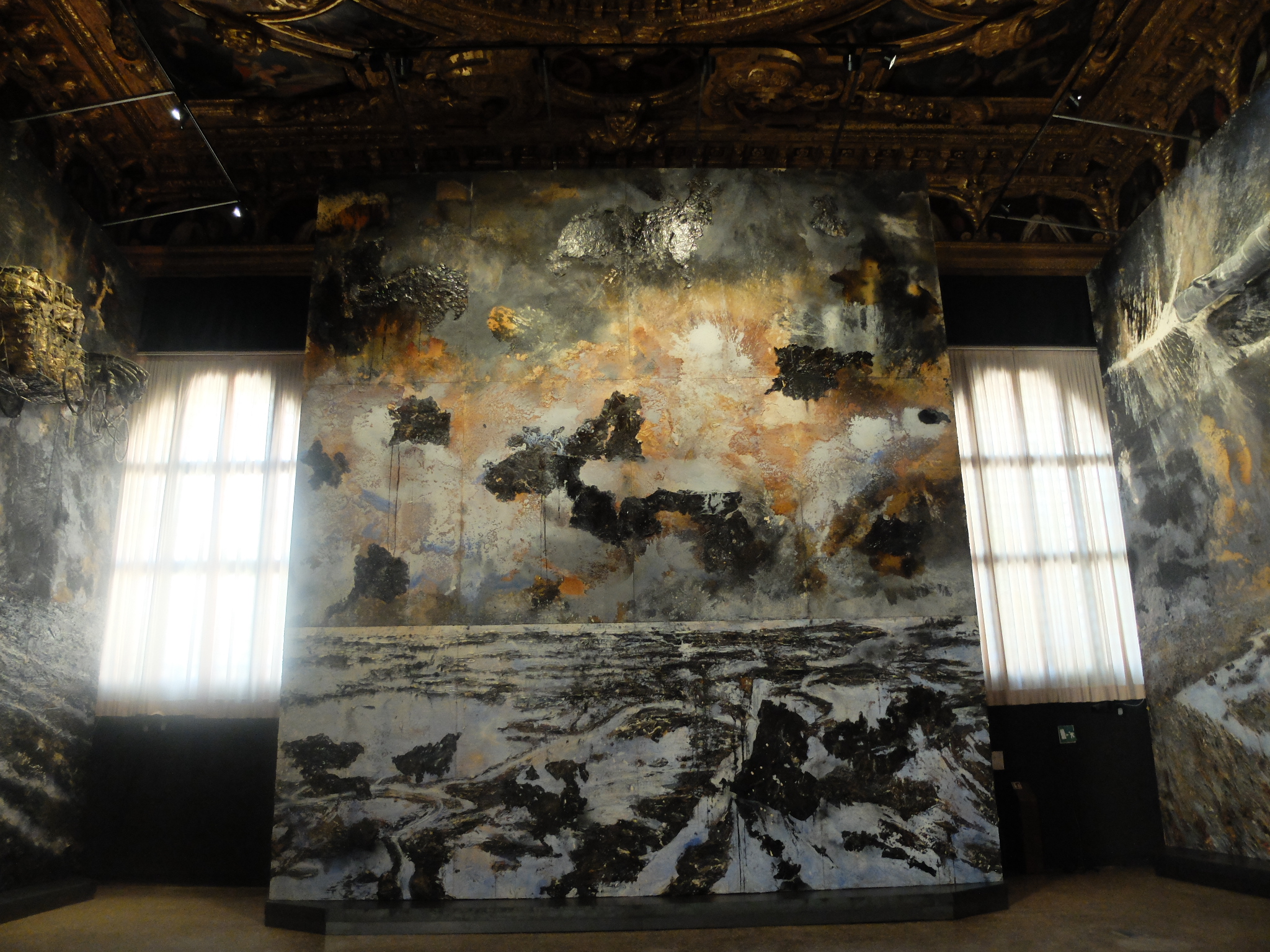 Au palais des Doges, Anselm Kiefer s’est attribué deux salles contiguës de l’immense Salle du Conseil : la Sala dello Scrutinio et la Sala della Quarantia où se déroulaient les dernières tractations lors des élections du doge. Deux salles prestigieuses dont on ne voit plus que les sols et les dorures des plafonds pour la première, et pour la seconde, les portraits de doges dépassant de toiles grandioses par leur taille et par la puissance d’évocation qu’elles dégagent.