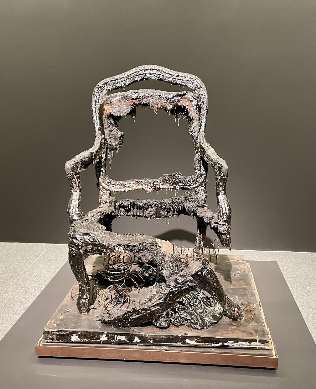 Arman brûlant des meubles en projetant de l’essence puis de l’eau pour arrêter la combustion et obtenir l’effet précis qu’il recherche.