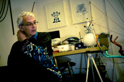 Quant à la musique de Sati faites de contrepoints espiègles elle entretient une parenté avec son univers ludique et rayonnant « Lors de mon expo au musée national du sport une fanfare y a joué du Satie. J’aime ce compositeur pour son coté mécanique » et dont les titres évoquent ses œuvres. Quelle distance sépare les « gymnopédies » de l’une des « anamorphoses » de l’autre ? Et puis il y a Roland Topor, le retour aux origines ! « Le dessin, avoue Martin, j’ai très envie d’y revenir pour explorer encore plus en profondeur mon imaginaire »