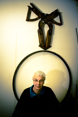 Martin Caminiti est directeur de la villa Thiole. Le reste du temps, il travaille dans son atelier à la Halle Spada à mettre en forme d’étonnants objets qui prennent racine dans notre présent et la tangente en quelques tours de roues. Pêcheur par son prénom, cycliste « chemin faisant », Caminiti est né en Calabre (Taurianova) en 1959 ce qui lui vaudra plus tard de se voir refuser une exposition en Italie du Nord. Mais c’est une autre histoire.