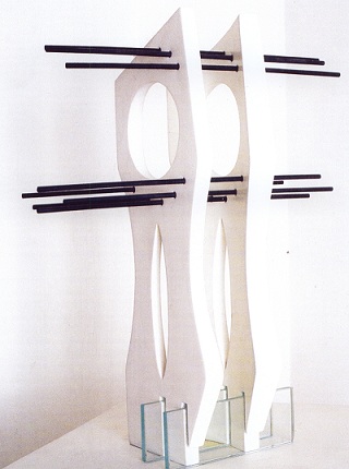 Que des artistes MADI : Bolivar (Uruguay), Bonies (Hollande), Bourmaud (France), Hasegawa (Japon), Joüet (France), Mascia (Italie), Nem’s (Hongrie), Prade (France), Ridell (Suède), Strack (Suisse), Zangara (Italie), fassent, à la Nattavaara Akademin de Sarvisvaara (Suède), un Hommage à Vantongerloo est donc à la fois poétique et tout à fait pertinent. Car Carmelo Arden Quin, dès son arrivée à Paris en 1948, eut à cœur de rencontrer le grand artiste abstrait qui avait collaboré au mouvement De Stijl, au groupe Abstraction-Création, et à Cercle et Carré, association fondée en 1929 qui n’avait vécu qu’une année mais organisé une exposition célèbre en avril 1930 à Paris à la galerie 23, son concepteur ayant été Joaquin Torres Garcia, rejoint par Michel Seuphor avec qui il avait fondé la revue Cercle et Carré. Cela n’avait pu, évidemment laisser Carmelo indifférent, et rejoindre Vantongerloo, n’était-ce pas continuer d’être fidèle à Torres-Garcia, celui qui, un soir de conférence à Montevideo, en 1935, lui avait ouvert la porte de la polygonalité ? ne pourrait-on dire de l’infini ? A travers une mystique de ressourcement tellurique ? Le côté un peu mystique de Cercle et Carré rejoignant, elle, la tendance présente dans le néo-plasticisme de Van Doesburg et Mondrian, fondateurs de De Stijl, curieux grand écart entre un désir de pureté, d’absolu, et d’application concrète dans l’architecture, le mobilier… et les œuvres picturales considérées comme des objets symboliques, ne représentant que la forme : la forme de l’Inaccessible… Et cette rencontre de Carmelo Arden Quin avec Georges Vantongerloo avait eu un grand effet sur son œuvre ainsi que sur celle des membres du « Centre des Recherches et Etudes MADI » de la Rue Froidevaux, concernant la question du blanc.