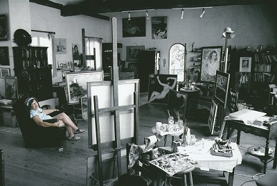 Gabrielle Renard fut le modèle de Renoir, comme Hélène Bellon qui vivait dans la bourgade. En 1915 elle avait connu un peintre amé¬ricain richissime, Conrad Slade, et ils eurent un fils, Jean, qui vit en Amérique. Les Slade se fixèrent d’abord à Borisella, montée de France, puis achetèrent la maison d’angle de la place du Château. Slade avait une longue barbe blanche. Il adorait danser à la terrasse du « Jimmy’s ». Gabrielle, bourguignonne, avait élevé Jean et Claude Renoir. Elle abondait en souvenirs pittoresques et, dans ses anecdotes, Renoir s’appelait « le Patron ». Familière, simple et pleine de bon sens, elle était adorée par les femmes du village avec qui elle échangeait des recettes. Souvent Jean et Claude montaient au Vieux Cagnes pour visiter les Slade. Il faut dire d’ailleurs qu’en un temps où le cinéma n’était pas développé comme de nos jours, on eut le plaisir de voir tourner des films dans le vieux bourg, « Le vagabond bien-aimé » avec Maurice Chevalier, « Gargousse » avec Bach, « Simplet » avec Fernandel qui gambadait agrippé à une corde au clocher de la Chapelle, et, par la suite « L’envers du paradis » de Gréville, avec Von Stroheim et Castelot, et surtout, « Le déjeuner sur l’herbe » de Jean Renoir. En de nombreuses occasions des habitants du vieux bourg et des peintres figuraient dans ces films. Ces souvenirs, certainement incomplets et transformés par le temps, font apparaître un Cagnes gai et insouciant, axé sur une cohabitation bon enfant de la bohème et de la vie agricole. (Michel Gaudet)