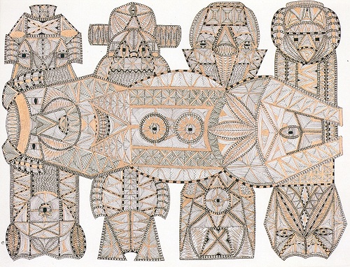 Et Avida Ripolin (alias France Delville, il faut bien l’avouer de temps en temps), s’était mêlée, et de l’amitié, et du profond respect que l’on peut avoir pour de vrais artistes, intransigeants dans leur recherche poétique et surréaliste (le hasard objectif était la tasse de thé quotidienne des Néron, encore davantage lorsque « les Luca » étaient là… Et donc Avida Ripolin avait écrit dans la Revue Go en 1982 : « Marcelle Tanneau dessine, peint, tisse, des formes de vie n’entrant dans aucune catégorie connue, formes émergeant du magma, non encore dissociées, ruissellant des ors magnifiques de leurs noces solaires. Mâle et femelle, elles sont les cousines des poupées de l’île de Pâques, qui ne font que se dresser, et manifester qu’on a les pieds sur le sol, et la tête dans le ciel. Chacune de ces effigies est unique, chacune est une riche céramique, se décore des pieds à la tête comme l’ont fait tous ceux qui voulaient célébrer leur propre beauté tribale, innocents comme des aras ou des paons, face au grand éclairagiste, le Soleil. Lorsque sur le théâtre ils entrent majestueusement, c’est la Création qui se montre, parée de tous ses onguents. Marcelle Tanneau est leur dame garde-côte, garde-frontière ». (A.R.)