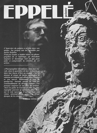En 1987, une photo de François Goalec montrait, associés, le visage d’une statuette ravinée, et le visage de Gérard. C’est impressionnant, cet être vivant qui aurait comme façonné comme son propre masque funéraire, d’avance. Parce que l’œuvre d’Eppelé est un intermédiaire entre vie et mort, une mémoire déjà-là, un futur antérieur en quelque sorte. J’aime bien que son interviewer dans le numéro de « Créations » dont il s’agit, Jackie Delobbe ait évoqué le « Cri » de Munch, ce cri sidéré, hors-champ du quotidien : l’effroi métaphysique. Tous les personnages d’Eppelé sont habités par la question d’un au-delà, de ce qui sort des pratiques habituelles, et Glenn Gould, « son » pianiste, est aussi un « hors-champ », désireux de donner sa propre version, unique, de Bach. Les personnages d’Eppelé semblent tous se ressembler, alors qu’ils crient tous, même pas : qui suis-je ? mais « est-ce que j’existe ? ».