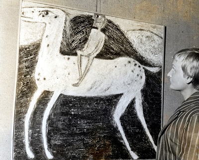 Dans la même plaquette Claude Martine nota qu’il fallait attendre toutes les audaces d’une douce femme peintre, aux cheveux blonds en baguettes, au visage aigu, tout sourires…