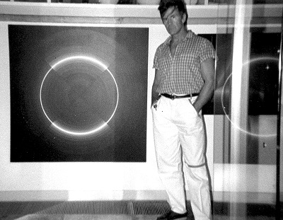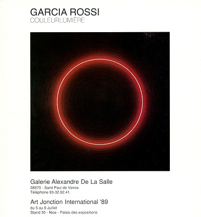 J’ai commencé à l’exposer début 1987 dans un groupe, avec Alanore, Alocco, Arden Quin, Caral, Chubac, Decq, Gasquet, Giordan, Klasen, Krefeld, Le Houelleur, Leppien, Luca, Presta, Rossel, Edmée, Villeglé…, et tout de suite, seul, l’année suivante, en juillet 1988, son exposition s’intitulait : « La Peinture couleur/lumière ».