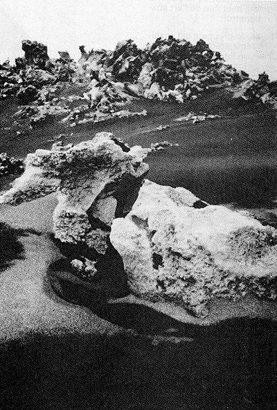 Gilles Ehrmann est un immense personnage surréaliste qui « partait dans des errances » et pratiquait au quotidien le « hasard objectif », surtout en compagnie de Ghérasim Luca et Micheline Catti. C’était un mage, et je lui consacrerai un jour toute une chronique. En 1986, son exposition chez moi s’intitule « La Question », et celle de de 1988 « Œdipe Sphinx ». Gilles Ehrmann est un Voyant : ce qu’il voit, il le voit deux fois, au dehors, d’abord, êtres du réel, et au-dedans, profondément inscrits en lui, écho déjà, souvenir. Difficile avec lui de ne pas ressusciter ce vieux cliché : ces paysages, ces momies, sont des auto-portraits, non qu’il ramène tout à lui, mais bien plutôt que tout vienne, en lui, prendre forme et sens autres. Il me semble bien que Gilles Ehrmann soit le seul photographe auquel Jean-Claude Lemagny ait consacré un long texte, qu’il faudra que je retrouve. Dans la revue « Go », en 1986, Avida Ripolin lui consacra un texte intitulé Au point feu de la magnitude, unité de mesure de l’éclat des étoiles. Le texte parut ensuite dans la revue Kanal.
