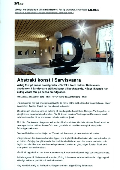 « Hommage à Vantongerloo par Madi. La Nattavaara Akademin a invité Madi à exposer au mois d’août 2012 au nord de la Suède, à Sarvisvaara, petit village proche du Cercle Polaire. En y réfléchissant, l’idée d’un hommage à l’artiste franco-belge Georges Vantongerloo s’est imposée.