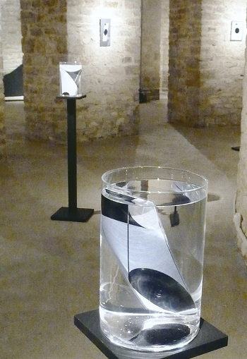 Ce qui est intéressant c’est que Philippe Vacher décrit son travail (dans le catalogue de son exposition au Château d’eau/Château d’art de Bourges du 28 janvier au 13 mars 2011) dans un style limpide mais qui, comme celui d’Arden Quin dans sa poésie, ne cesse de parler de la genèse d’un lieu, métaphore de la Genèse du Monde. Un sens de l’archè. D’autant qu’ici l’architecture d’un château est convoquée dans une dialectique où le travail plastique y intervient alors que la pensée du lieu a d’abord présidé à sa conception. Mais écoutons-le :