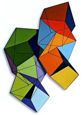 Piergiorgio Zangara développe ses études formelles en partant du cube. Dès 1990 ses œuvres présentent des constructions avec des cubes qui, en certains cas, créent une ambiguïté dans la perception de la troisième dimension. « Solidi in sequenza ondulata n°3 » (2000), présente cette ambiguïté accrue par la superposition des couleurs.