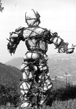 Il a démontré aussi qu’avec des débris de ferraille, il est capable de produire de véritables figures humaines, et plus récemment encore que le métal se prête à la création d’images vitales qui sont à la fois organiques et mécaniques. César a su animer la sculpture en métal, tout en lui donnant un sens qui jusque là lui avait manqué et tout en accomplis¬sant de nouvelles prouesses avec un nouveau moyen d’ex¬pression. Rien de plus naturel donc qu’il ait acquis une place parmi les jeunes artistes français de premier plan et dans la sculpture contemporaine d’avant garde. Se maintenir à cette position exige de la volonté. Mais César est de caractère indépendant et volontaire, ce qui lui permet de se concentrer sur le but qu’il vise. Ses dernières sculptures nous en donnent une preuve. Car loin d’avoir relâché ses efforts, il a mené à bien un ensemble de conceptions origi¬nales, et il se montre toujours à la recherche de nouvelles possibilités expressives.