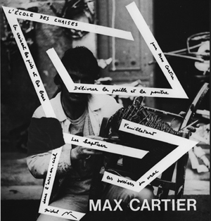 « Max Cartier prend, comme il se doit, toutes les libertés avec l’objet de son désir. Ou plutôt les objets de ses désirs. Le pluriel conviendrait mieux car les désirs sont multiples et l’objet, bien qu’il corresponde à un seul concept, revêt les formes de chaises les plus diverses. Max Cartier pourrait bien être un Eugène Ionesco devenu peintre et sculpteur. Il nous fait revivre l’aventure des chaises dans le théâtre de son atelier, au terme d’une performance qui s’apparente tout autant à la colère d’Arman qu’au Dripping Pollockien. La gestualité est déterminante chez cet ancien acteur : osier, bois, métal, grain, ressorts, tissus, bourre, tout y passe, toutes les chaises et tous les styles. Désossées, dépiautées, vidées et réarmées, restructurées au terme d’un corps à corps délirant et puis aspergées et cirées, passées à la peinture, les chaises sont comme exorcisées de leur routine signifiante et ce qu’il en reste après le passage du démon créateur atteint à la fascinante sérénité de l’œuvre d’art. Car il s’agit bien d’un processus de possession. Max Cartier monte démonte casse et assemble peint et repeint comme un possédé. Son travail est un jeu qui s’apparente à celui des acteurs d’Andrzej Zulawski : la chaise est la femme publique. Que reste-il de tout ça, en tension sur un mur ou en équilibre au sol ? Un meuble défiguré et bariolé qui a gardé la mémoire de sa dramatique aventure. Une aventure qui aurait pu tourner au cauchemar et qui débouche sur le miracle de la métamorphose. L’image finale de cet objet tendu trituré et peint évoque les grands moments de l’expressionisme et du cubisme leurs charmes stridents et chaotiques, leurs explosives beautés. Telle est la loi de l’énergie vitale : pour qui le veut l’apocalypse c’est être gentil. C’est son sourire sourd, venu des profondeurs ténébreuses de l’être, qui éclaire la création gestuelle de Max Cartier. Un geste, un acte, un coup de théâtre, c’est le jeu de l’irréparable, un jeu sur lequel se fonde l’essence même du monde, et qui ignore la répétition. J’attends déjà Cartier au tournant après la chaise : comment saura-t-il s’en débarrasser ? »