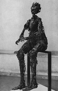 L’expression « sculpture en métal » est susceptible aujourd’hui d’être employée de façon extrêmement vague. Aussi préciserai je que je n’entends pas par « sculpture en métal » un assemblage de matériaux hétérogènes bois, plâtre, celluloïd, fil de fer, etc. dont on effectue ultérieurement une fonte en bronze. J’appelle sculpture en métal une sculpture qui est directement martelée, soudée, tordue, à partir de n’importe quel métal en feuille, en ruban, en barre ou en fil. Cette technique a été développée à des fins artistiques seulement au cours de ces dernières années et déjà des résultats très différents ont été obtenus. Avant de discuter les desseins, les réalisations et l’originalité de César, il convient de retracer l’historique de cette technique et de donner un aperçu de ce qui se passe aujourd’hui.