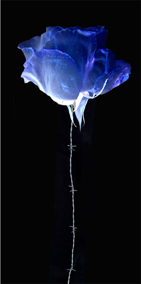 Yves HAYAT, comme tout artiste, comme tout philosophe, transcrit dans ses oeuvres une compréhension du monde personnelle et unique. Les images qu’il propose à notre regard, dans cette exposition intitulée « Le Parfum, cet obscur objet du désir », ne superposent pas deux univers, elles se répondent et sont, en fait, la représentation vraie ainsi que complexe d’une seule et même humanité. On peut parler d’étrange unité, d’association instinctive primaire même si l’utilisation du parfum renvoie à la civilité des relations humaines. L’exposition est, en tous cas, une initiation à l’étrange vérité de la vie, vérité qui ne part plus, pour reprendre la réflexion d’Edgar Morin, d’un sol ferme mais plutôt d’un sol qui s’effondre.