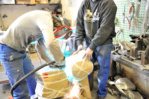 Le niçois Jean-Louis Begnis n’a pas emprunté la ligne la plus droite pour devenir « « le sage homme » des artistes plasticiens. Il en a vu du pays avant d’établir sa nurserie tout feu tout flamme au fin fond de la Z.I de Saint-Laurent du Var. Le jeune homme s’est frotté à la déco et à la musique, un univers qui lui colle à la peau et qu’il n’a pas fini d’explorer. « Ado je suis monté à Paris où j’ai travaillé pour CBS et Virgin, puis j’ai fait des bracelets pour la haute couture, des figuratifs de vitrine pour des bijoutiers à Florence, des peintures pour une galerie à Santa Fé ». C’est à Nice qu’il fera ses armes dans la décoration auprès de grands maîtres artisans en travaillant entre autres sur le réaménagement d’établissements de nuit (la Suite, le Café Sud, le Master home). De cette période qu’il qualifie « d’école de l’exigence ! », de ce parcours initiatique, il fera son miel au point de décrocher en 1990 le titre de Meilleur Ouvrier de France en Ferronnerie et d’hériter d’un regard décapant sur son métier. « J’ai voulu apporter du vivant, de l’organique dans le métal, de la modernité à la profession ! Je ne voulais surtout pas m’enfermer dans une spécialité ou dans un artisanat poussiéreux ».