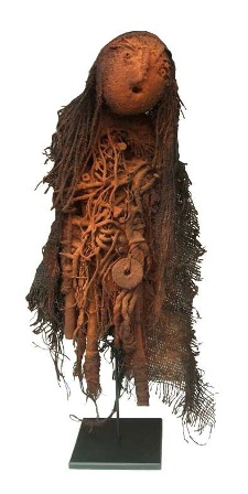 A la manière des civilisations africaines ou précolombiennes, totems, bas-reliefs et poupées semblent