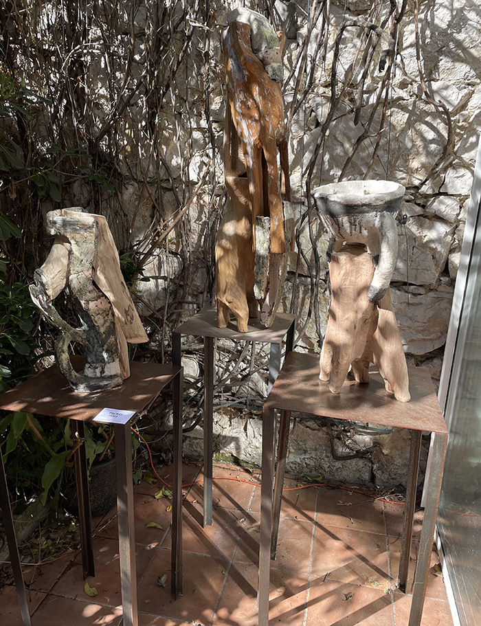 Dans le couloir, Claudie Poinsard montre une série de personnages à la fois expressionnistes et flous. Dans une petite pièce surélevée, Gérard Sérée est entouré de ses peintures, sculptures et livres d’art raffinés.