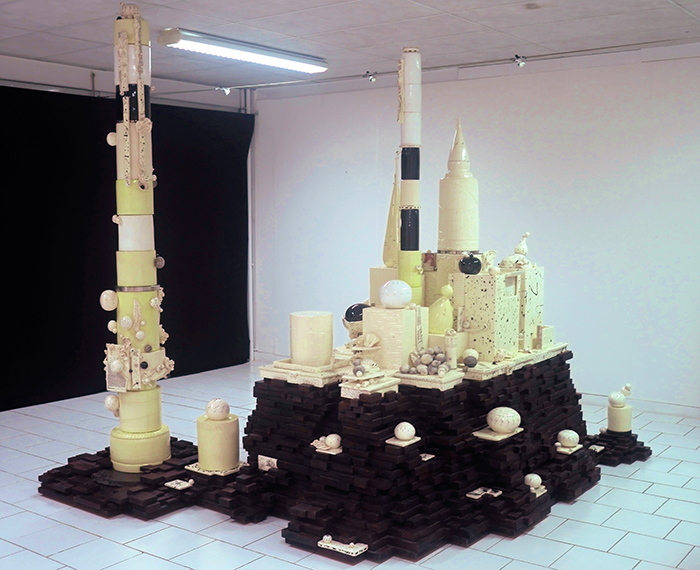 Avec le temps, l’artiste a développé puissamment son travail céramique en élaborant et en construisant des villes entières qui s’étendent démesurément. Cônes, pyramides, dômes, colonnes, blocs, etc., sont agglutinés comme des immeubles, séparés par des routes ou des champs. On rêve de voir dans un bel espace muséal cette immense cité de céramique.