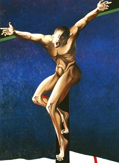 Pour hurler ce silence monumental qui fera trouver le T de la Croix. Le T de Théos, ce genre de dieu, institutionnel, contre lequel Socrate riait d’un rire à la Cioran. Dire ce qui manque à la Croix. Erection d’un anti monument, au MANQUE. Christian Bobin, dans La Part manquante, dit qu’il écrit pour rejoindre cet amour qui manque à tout amour. Ainsi fait le peintre. C’est ce mot manquant fondateur défaillant, que Jésus est venu dire, et pour lequel il a été condamné. Père, pourquoi m’as tu abandonné ?