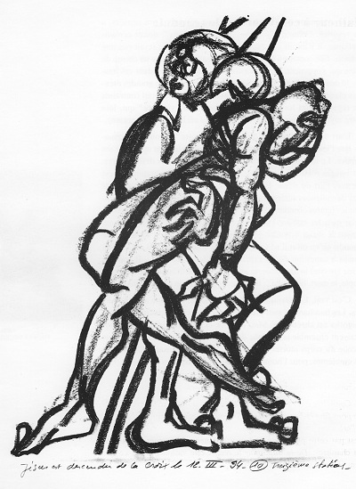 Sortir de soi même, Henry Le Chénier semble en avoir suivi la leçon pour produire cet amalgame qu’il nomme peinture. Il faut l’écouter lorsqu’il parle de la genèse de ce chemin de Croix, de ce comportement de sa part, présidant au lâcher (prise) de ces admirables dessins qui présideront eux mêmes aux tableaux...
