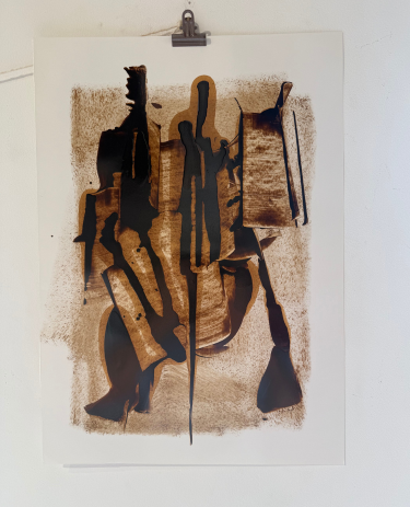 Accompagnant la sortie de la monographie, la galerie présente de remarquables peintures au bitume de Judée" (hydrocarbure apparenté au pétrole, déjà utilisé par les peintres au Moyen Age) ainsi que des "Epitomés", faits de rubans adhésifs fixés par le chalumeau sur des plaques d’imprimerie ou des plaques de laiton.