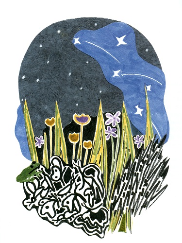Mais donc, comme André Verdet, Jani a tous les talents. Ses images pour « Fête de nuit au jardin » iraient magnifiquement avec une « Alice au pays des merveilles », il y a quelque chose de merveilleux dans sa vision du monde, et d’insolite. Et son livre sur André est là, maintenant que lui n’est plus, comme une rencontre prémonitoire… attendue, inévitable, mais prémonitoire : un jour cela aura été… Ils étaient tous deux vivants à l’époque, et Jani a jeté sur la table du Moine (tous deux ont un peu de cette dimension), une poignée d’étoiles en guise de Vanité. C’est beau.