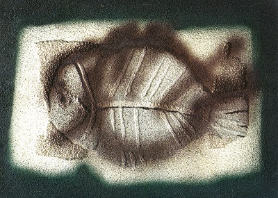 « La crevette », peinture et sable/toile (1966-68)