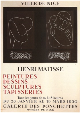 Ce sera cependant une exposition Matisse qui inaugurera la Galerie des Ponchettes. 38 tableaux, 23 dessins, 2 tapisseries et 5 sculptures seront réunis.