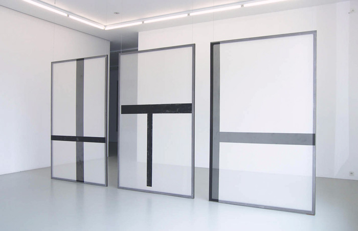 Cécile Bart, vitres (noir), 1987. Dépôt du centre national des arts plastiques - ministère de la Culture et de la Communication, à l’Espace de l’Art Concret, Mouans-Sartoux