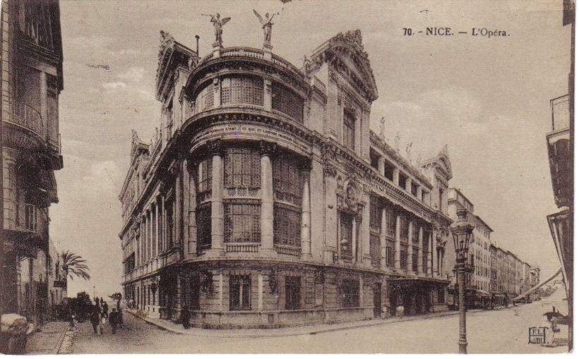 Le théâtre municipal de l’opéra, dit « l’Opéra » tout court, que l’on a reconstruit à l’italienne après un cruel incendie du 23 mars 1881, au début d’une représentation de Lucia di Lamermoor tient une place de choix « dans la saison ». On y joue tous les grands opéras de préférence italiens et on y monte des ballets. L’opéra de Nice connaît deux créations mondiales : La prise de Troie de Berlioz en 1890 et Marie-Madeleine de Massenet en 1903, ainsi que de nombreuses créations françaises, notamment Eugène Oneguine de Tchaïkovski en 1895, L’or du Rhin de R. Wagner en 1902 ou encore Manon Lescaut de G. Puccini en 1906.