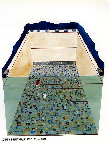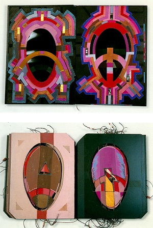 B.M. : Oui. Je mène ces trois activités de manière parallèle. Ma peinture était dans les premières années relativement influencée par Paul Klee. C’était vraiment pour moi le peintre qui faisait la synthèse entre la Figuration et une certaine idée de l’Abstraction. Ce rapport m’a aussi beaucoup intéressé dans ma découverte d’autres civilisations grâce aux voyages que j’ai pu faire dès l’âge de 15 ans. Mon travail aujourd’hui consiste à réaliser des images qui sont amputées d’une partie de la réalité et qui sont dépossédées d’une part d’imaginaire, mais transmutées dans quelque chose qui se situe entre l’abstrait et le figuratif, et d’autre part des écritures inventées comme sorties d’un inconscient. C’est en 1976 que mon travail de performances a débuté, plus physique, plus gestuel - c’était la prolongation du théâtre que je faisais adolescent, et la performance me permettait de mettre en scène des aspects musicaux, des aspects extérieurs presque exhibitionnistes au sens de Gina Pane, et de tous les gens que j’ai rencontrés par la suite. En 1974, j’ai réalisé mon premier livre d’artiste ; cela a consisté en un détournement du livre avec des pliages, des déchirures, des décollages, des superpositions, des tampons.