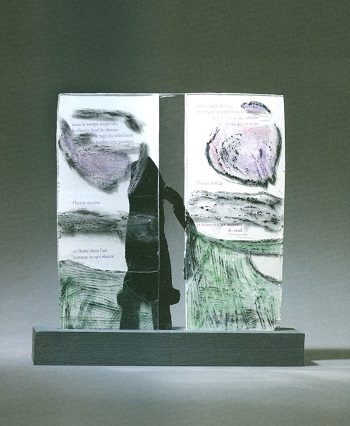 Cette exposition « Ponctuations » est une belle manière de faire le point sur ce qu’a vécu – et continuera certainement de vivre – une sorte de Collectif, car elle présente les 35 livres que Jean-Jacques Laurent a réalisés avec des écrivains, des poètes, c’est impressionnant. Et cela vaut la peine de citer ceux avec lesquels le peintre a joué comme des duos de jazz : parfois c’était lui qui lançait la proposition, parfois c’était l’autre, l’écrivain, le poète, mais toujours il s’agissait de répondre à des vagues de sens par d’autres vagues de sens (dans tous les sens du terme), afin que la mécanique ondulatoire persiste et signe, dans un long défilé où chacun se faisait ponctuation d’un Grand Livre. « L’homme dans le ventre de sa mère est un livre plié » dit le Talmud. Quant à cette Mère, ou Femme ( ?), qui les a tant fait parler, qu’ils ont appelée Madame (ma dame ?) il y a beaucoup à en dire, mais voyons déjà quels ont été les interlocuteurs de Jean-Jacques Laurent depuis 1993 ? Michel Butor, Raphaël Monticelli, Jean-François Téaldi, Frédéric Ballester, Alain Freixe, Leonardo Rosa, Bernard Noël, Alexandre Bourgoin, Jacques Simonelli, André de Richaud, Régine Lauro, Monique Marta…