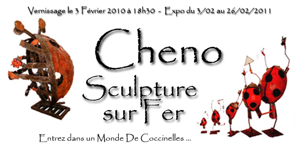 De cette évidente rupture avec la tradition classique, Cheno, à l’aide de fer, de soudure et de peinture, invente un monde peuplé de Coccinelles.